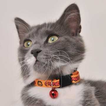 Desenli ve çıngıraklı ayarlanabilir kedi boyun tasması.