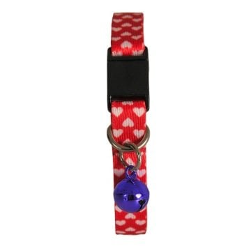 Güvenlik Kilitli Ayarlanabilir Kırmızı Beyaz Kalpli Yumuşak Doku Kedi Boyun Tasması 22-30 cm