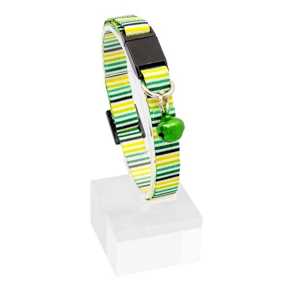 Güvenlik Kilitli Ayarlanabilir Sarı Yeşil Enine Çizgili Kedi Boyun Tasması 22-30 cm
